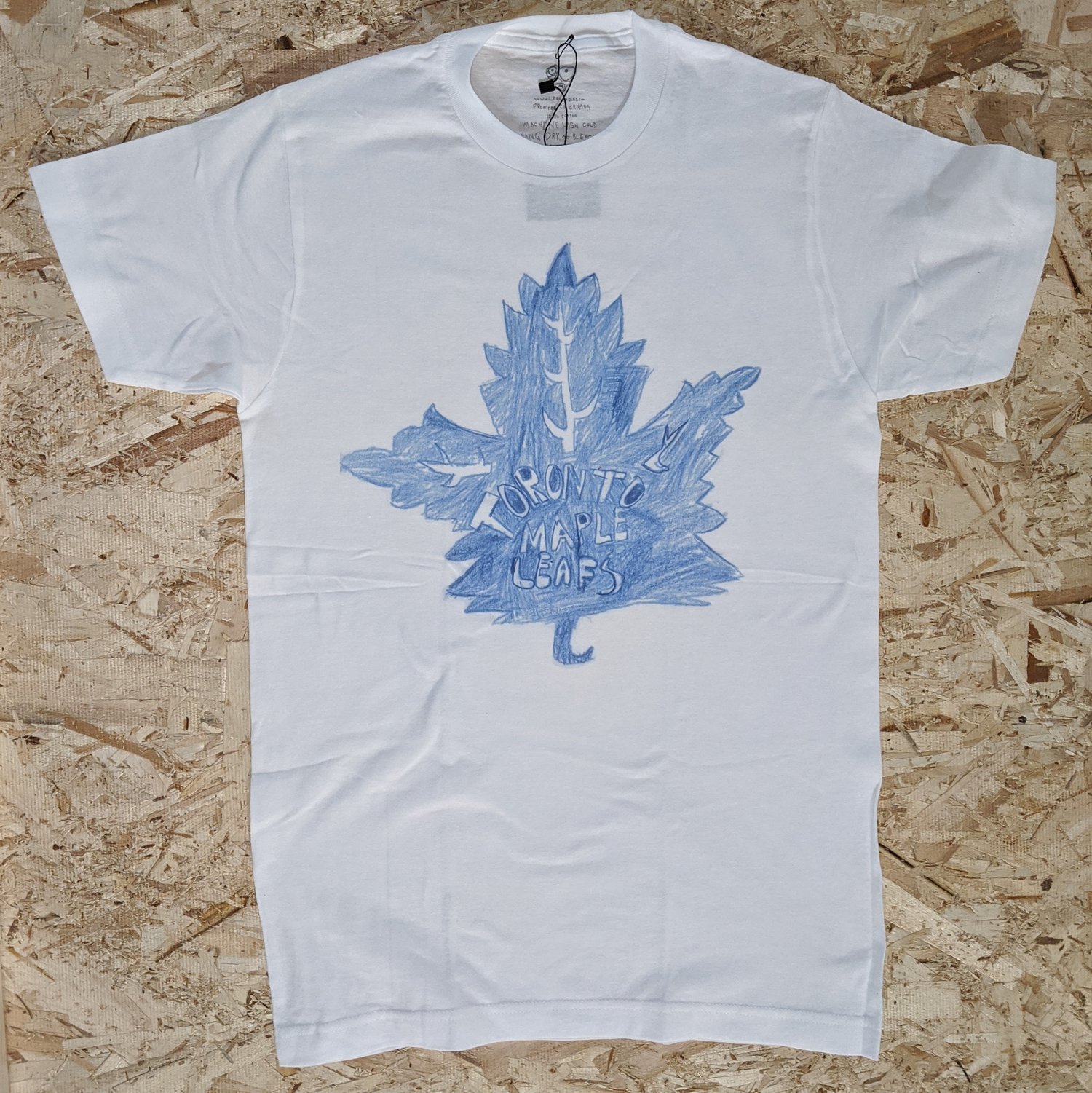 This was illustrated by popular demand. Once Leeloo was known for her Jays & Raps tees, Torontian's quickly requested the Leafs. Drawn when she was 9 years old for the satisfaction of her Leeloodles' followers.